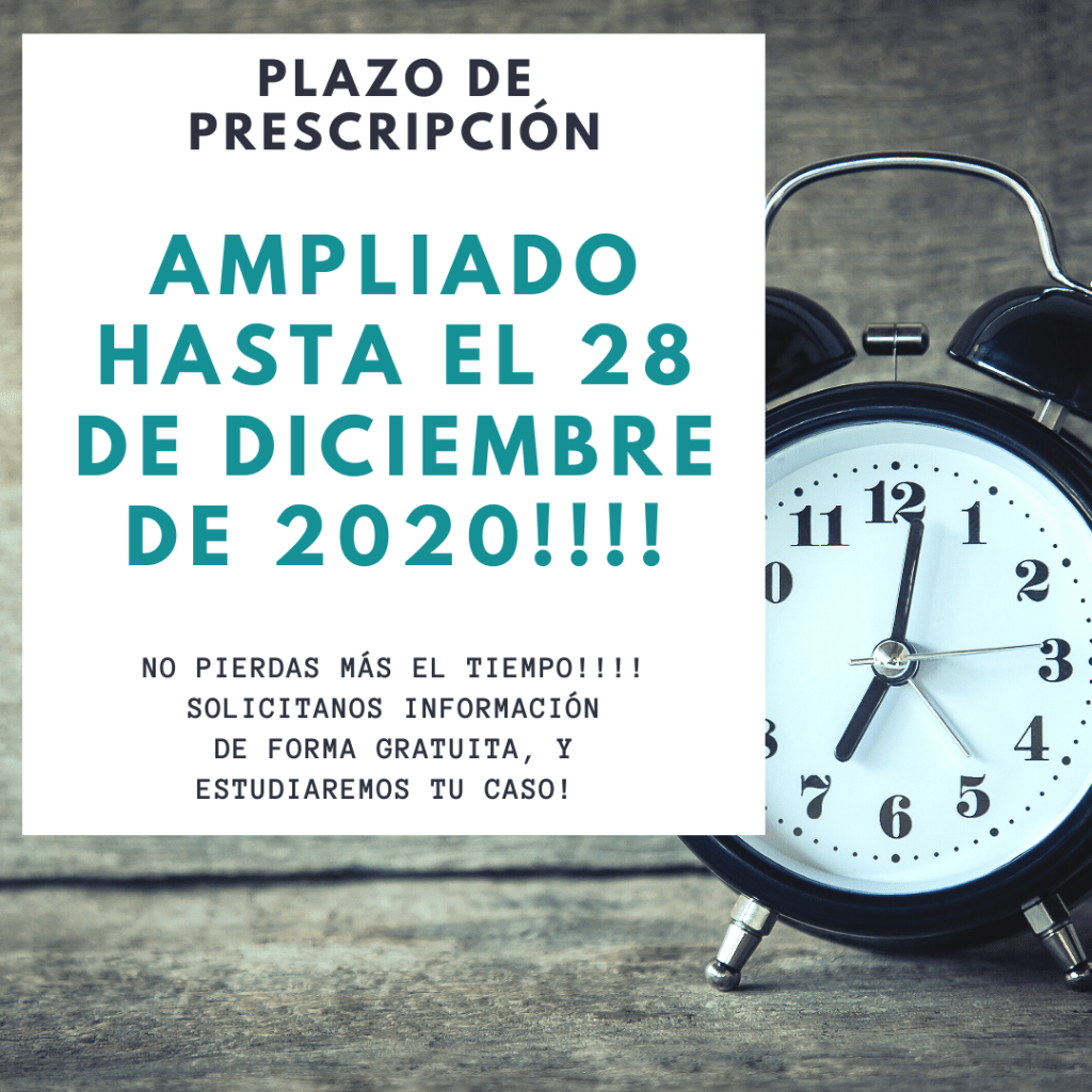 Como venimos anunciando desde hace varios meses, el PLAZO DE PRESCRIPCIÓN en relación con los SWAPS, así como resto de productos tóxicos (Valores Santander, participaciones preferentes, etc.), así como de hecho, en general, CUALQUIER RECLAMACIÓN DE CANTIDAD de dinero, prescribía en los productos ya vencidos desde hace años, el 7 de octubre de 2020.