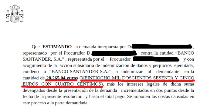 El JPI 8 de Terrassa da la razón al cliente, estimando la demanda por los daños y perjuicios causados, obligando a la entidad a restituir al cliente la cantidad íntegramente invertida.
